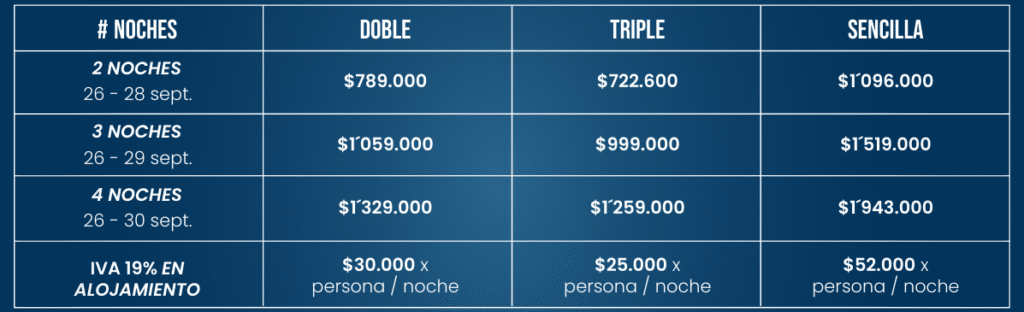 – Seguro Hotelero (opcional: $11.200 por persona x noche)