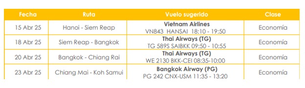 Tiquetes aéreos internos Hanoi – Siem Reap, Siem Reap – Bangkok, Bangkok – Chiang Rai,